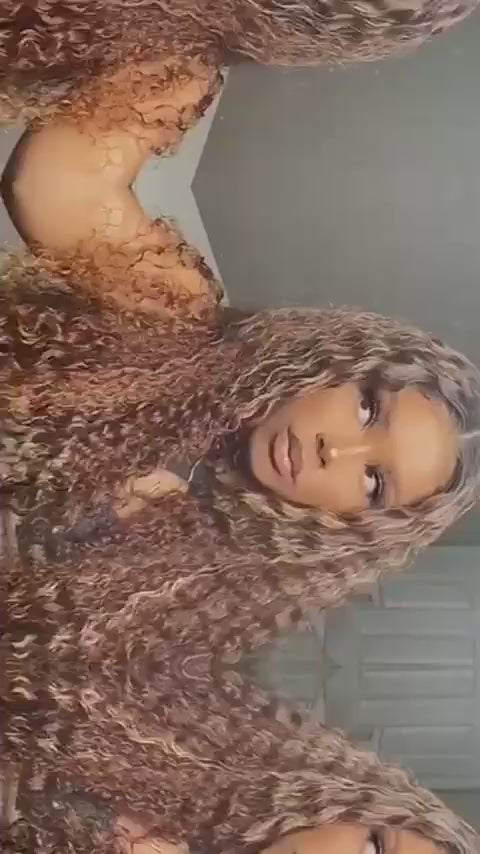 Brown Blonde Curly Hair 3 Bundles with Lace Closure